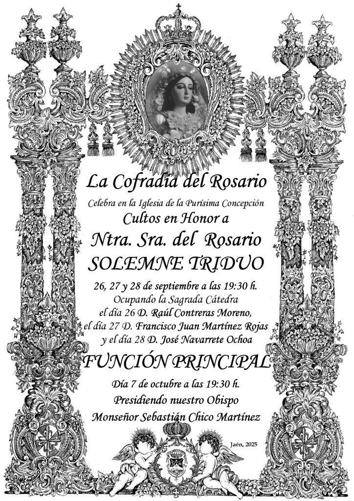 Actos y CultosCofradía Cultos en Honor a Ntra. Sra. del Rosario 2025 11/09/2025 admin Los cultos a celebrar desde el 25 de septiembre al 7 de octubre serán los siguientes:
